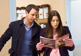 7. Griffin (Seth Myers) and pregnant Tess (Jessica Biel) compete with another pregnant woman (Sarah Pulson) and her husband (Til Schweiger)